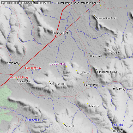 QUESTION MARK, Lincoln Gap, South AustraliaQuestion Mark is the name of a hill, not far from Port Augusta in South Australia. Is it shaped like a question mark, or should we question a fellow named Mark? Well, the origin of the name is hard to determine and a name like this is near impossible to google. Strangely, the Wikipedia page is only in Swedish.